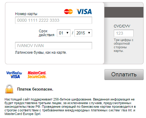 Способы оплаты